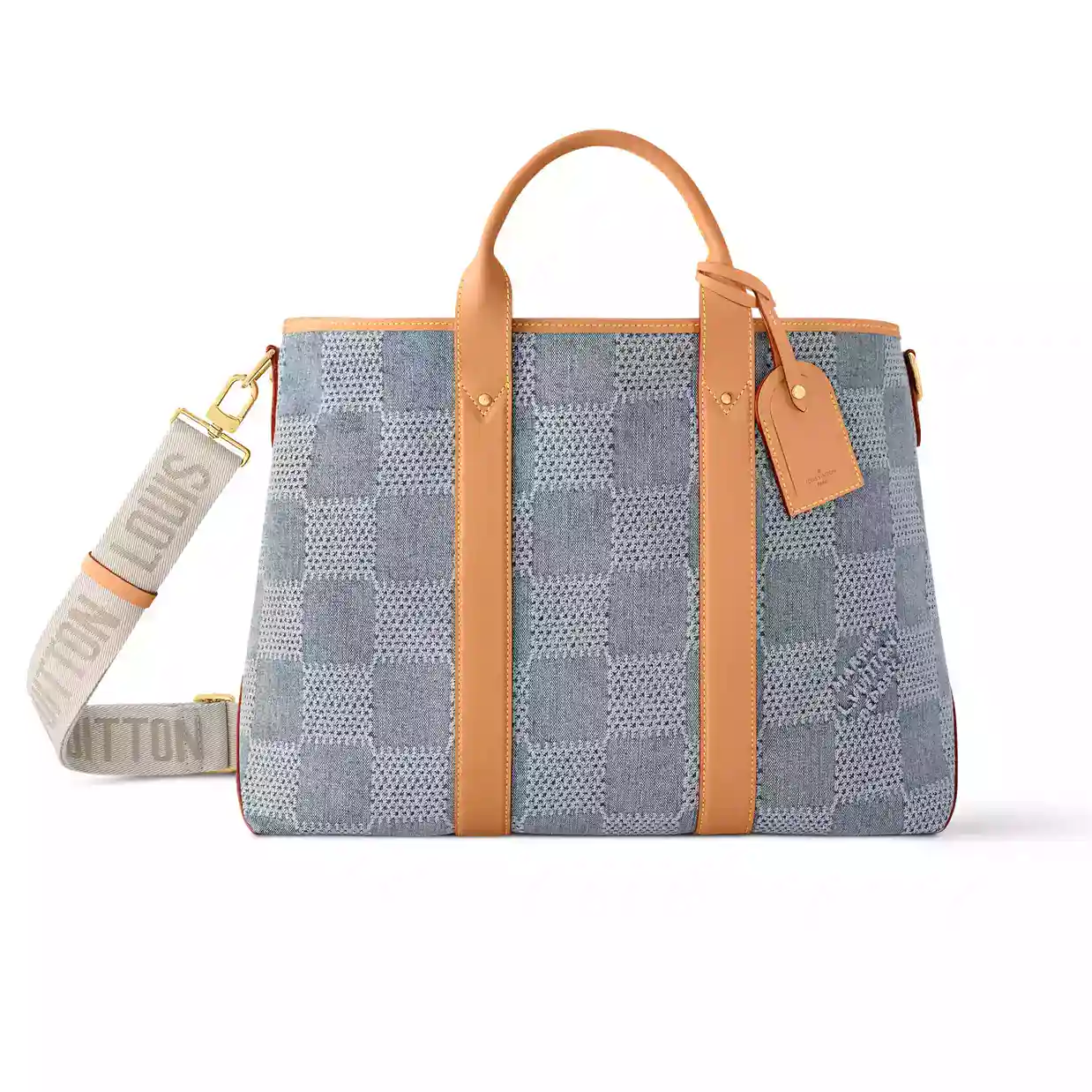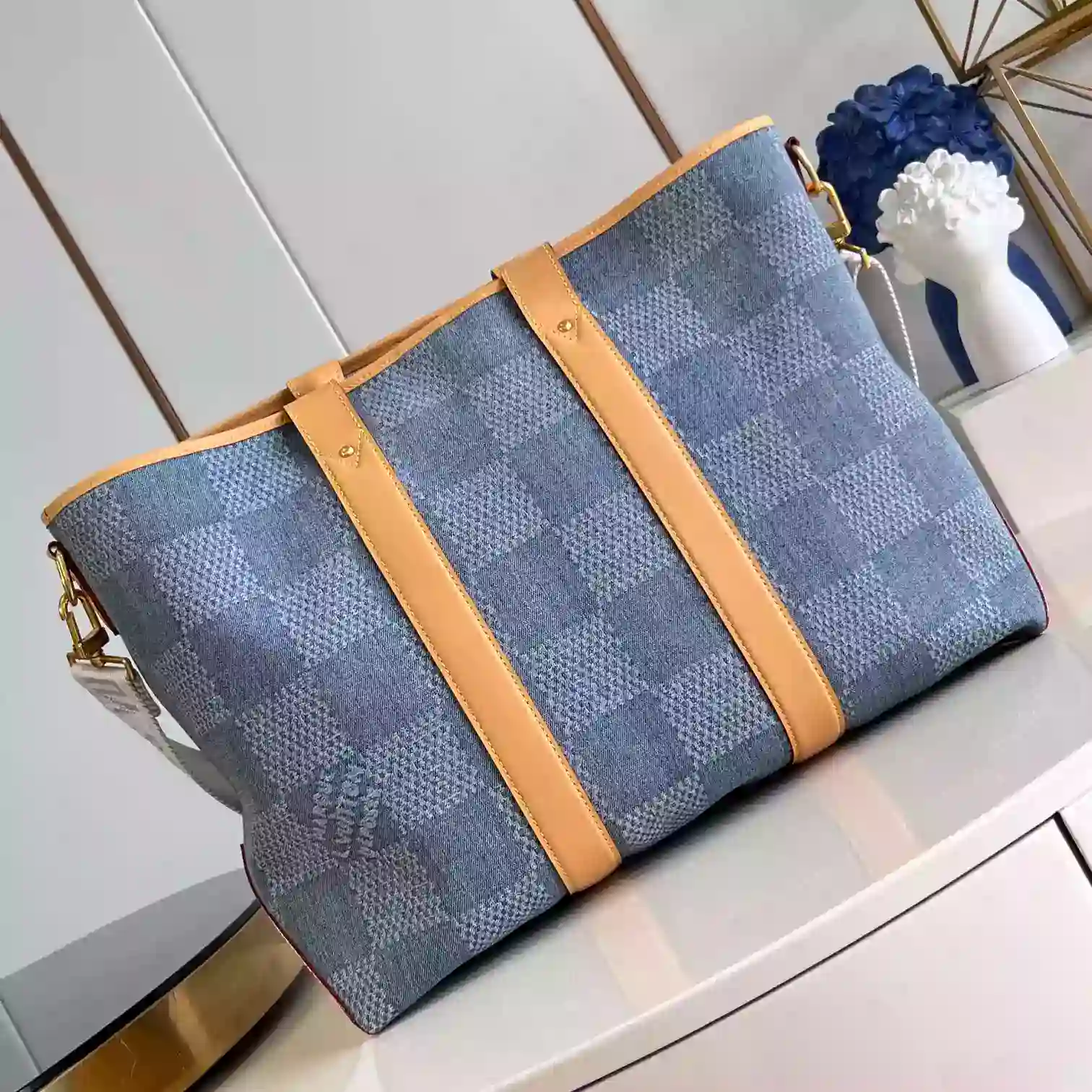 WEEKEND TOTE BLUE DAMIER DENIM 3D COTTON CANVAS N40702 ; LW442