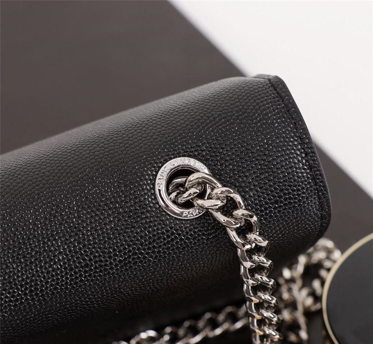 The YSL Kate Medium Black Bag is an epitome of classic elegance and contemporary chic from the renowned fashion house of Saint Laurent. This sophisticated accessory is crafted from premium black leather, exuding a timeless allure. The bag features the iconic YSL logo in polished gold-tone hardware, adding a touch of luxury to its sleek design. With its versatile chain strap, the Kate bag can be worn as a shoulder bag or a crossbody. Making it perfect for both day and night. Its minimalist aesthetic and high-quality craftsmanship make the YSL Kate Medium Bag a must-have for any fashion-forward wardrobe.