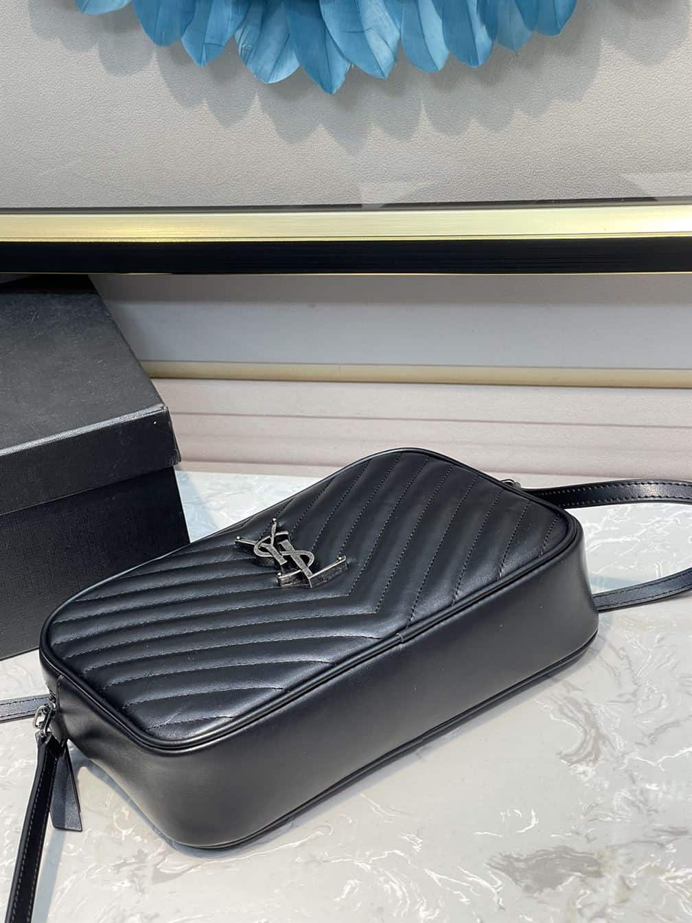 - The YSL Lou Camera Bag in quilted leather exemplifies Saint Laurent’s timeless elegance and craftsmanship. This iconic crossbody bag features the distinctive “Y” quilting pattern on luxurious leather, showcasing both sophistication and durability.