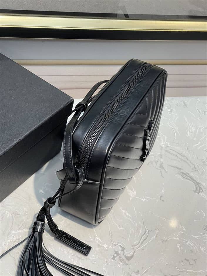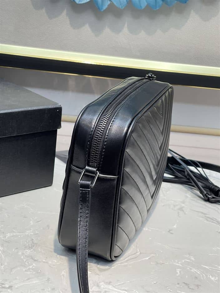 - The YSL Lou Camera Black Bag in quilted leather is a refined and versatile accessory from Saint Laurent. This compact yet spacious crossbody bag features the iconic “Y” quilting pattern that epitomizes the brand’s classic elegance. Crafted from luxurious quilted leather, it exudes sophistication and durability, making it suitable for everyday use.