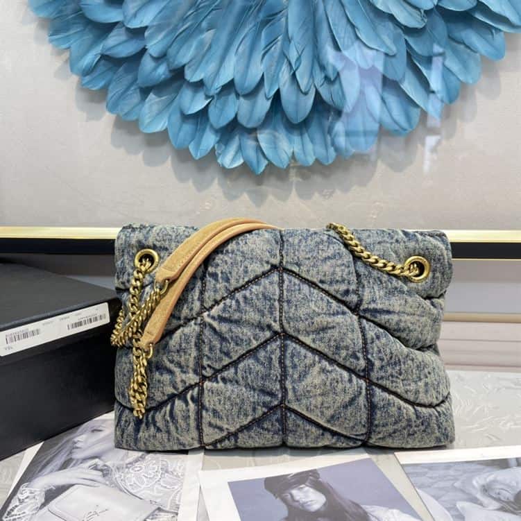 - The YSL Medium Puffer in Suede and Denim is a contemporary and stylish handbag that blends luxurious textures with modern design from Saint Laurent. The quilted detailing and polished YSL logo hardware enhance its sophisticated aesthetic, making it a standout accessory for any occasion.