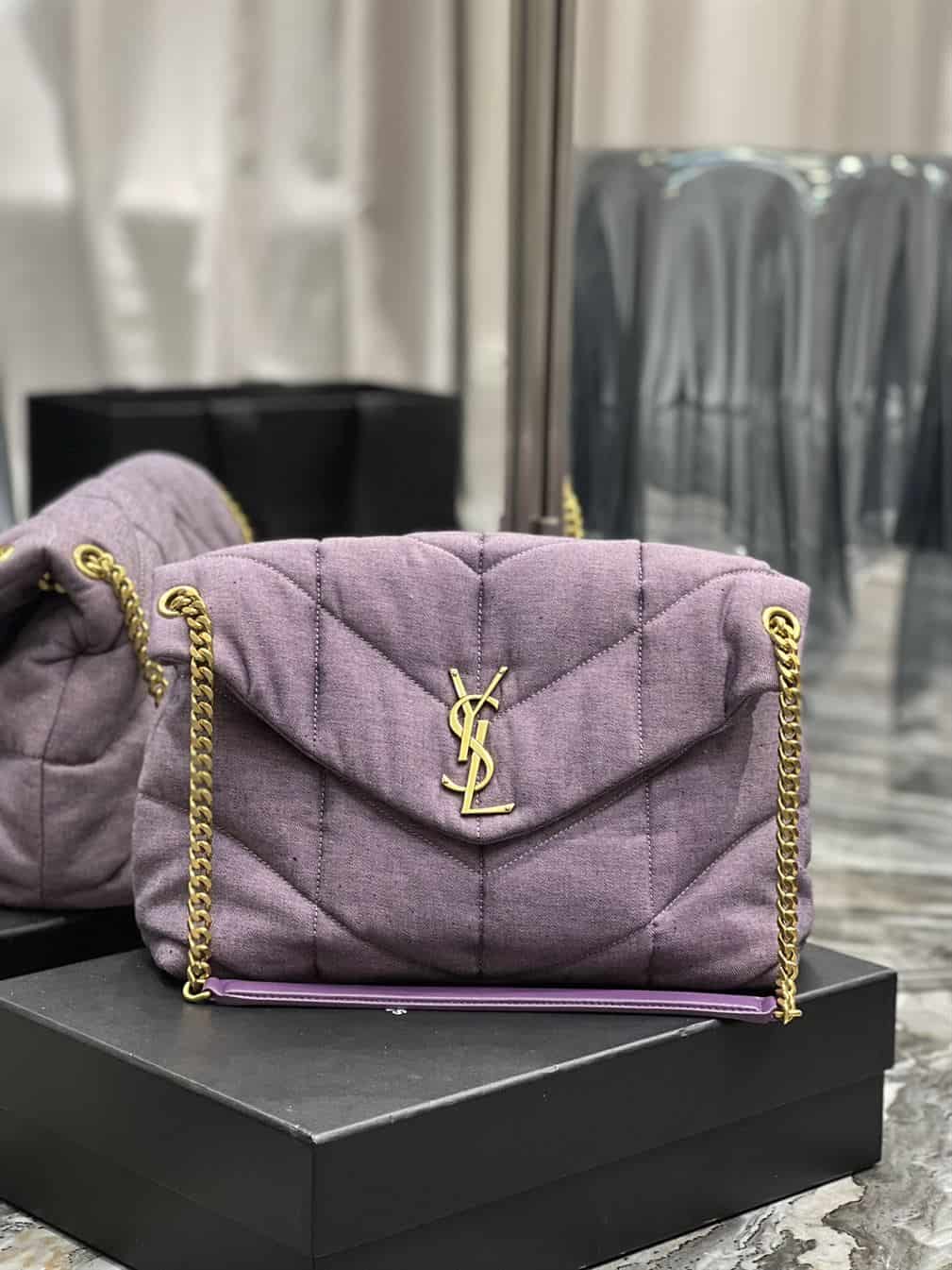 The YSL Medium Puffer Purple Bag is a bold and luxurious accessory that embodies the distinctive style of Saint Laurent. The iconic YSL logo in polished metal hardware enhances its chic aesthetic, making it a standout piece for any occasion. With its medium size and versatile strap, the Puffer bag offers both functionality and elegance, perfect for those who appreciate luxury and want to make a statement with their fashion choices. Ideal for adding a pop of color to your wardrobe, the YSL Medium Puffer Bag is a must-have for fashion-forward individuals.