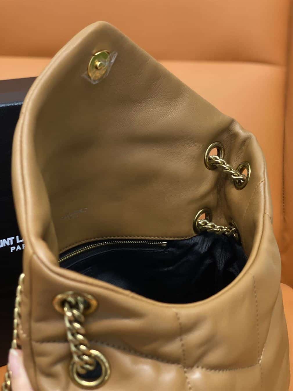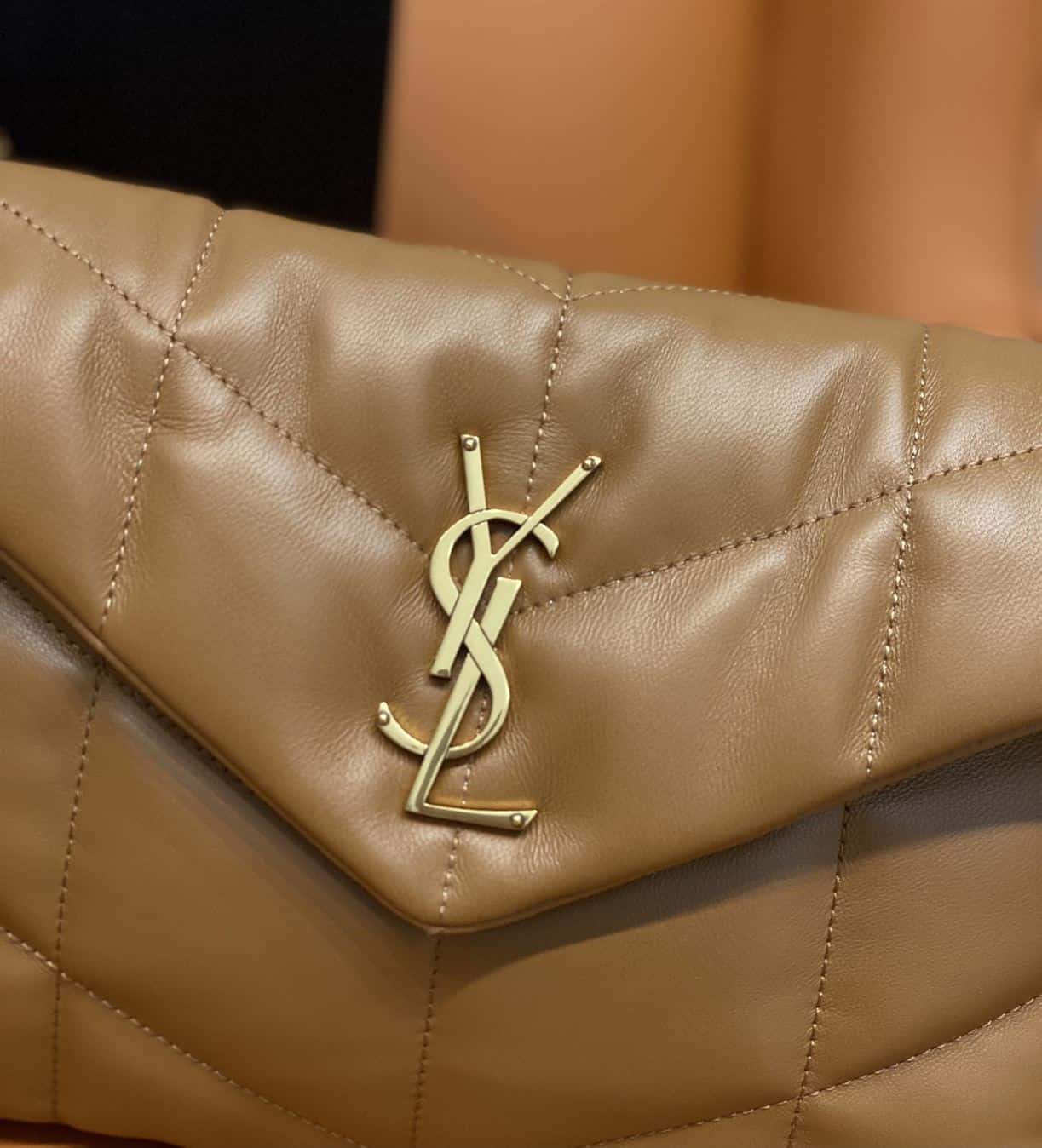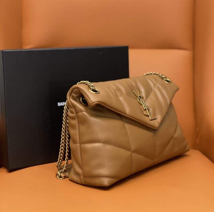 YSL SMALL PUFFER IN QUILTED NAPPA BROWN LEATHER – YB055