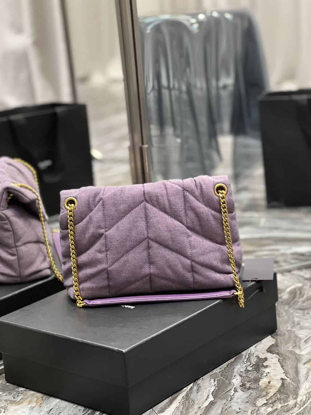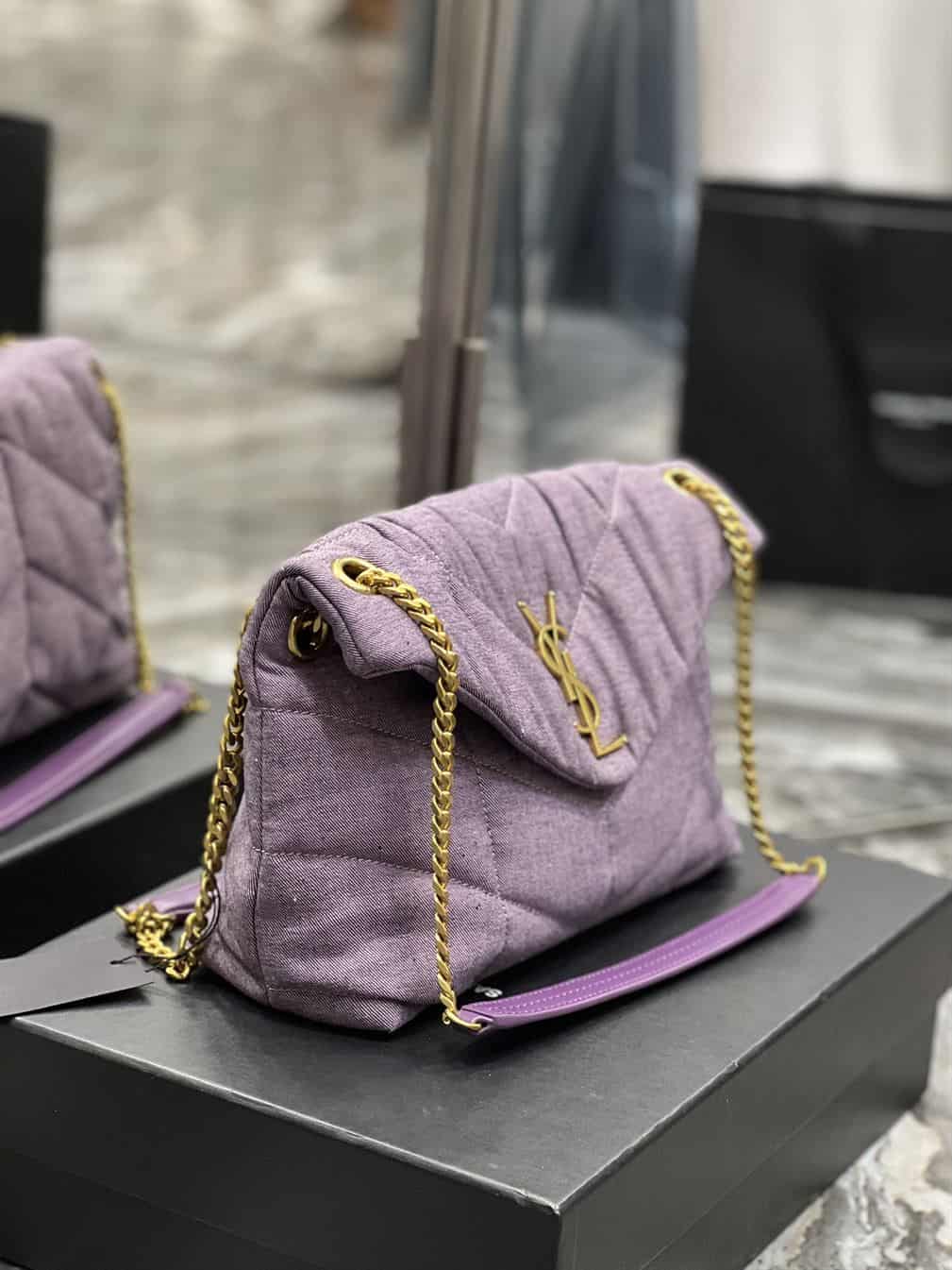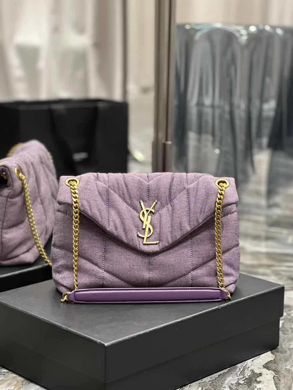 The YSL Small Puffer Purple Bag is a striking and luxurious accessory that showcases Saint Laurent’s flair for combining bold color with sophisticated design. Crafted from premium materials, this bag features a distinctive puffed silhouette that adds a modern twist to its classic form. The rich purple hue exudes a sense of elegance and individuality, while the iconic YSL logo in polished metal enhances its chic aesthetic. With its compact size and versatile strap, the Small Puffer can be worn as a shoulder or crossbody bag, offering both style and functionality. Ideal for those who appreciate high-quality craftsmanship and a pop of color in their wardrobe. The YSL Small Puffer Purple Bag is a standout piece that elevates any ensemble.