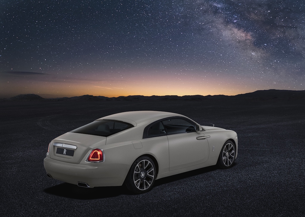 Drawing inspiration from the futuristic spacecraft and aerospace technology fields, the Nebula Collection includes the Black Badge Ghost, Wraith and Dawn. The exterior touts Iced Selby Grey coloring, while the interior is enveloped in Selby Grey and Black leather, with Sunset accents. A honeycombs-like shape is woven into the rear of each car, representing the honeycombs structure “used in some of the most ambitious and technologically advanced aerospace developments, from space telescope mirrors to space station windows,” per the brand.