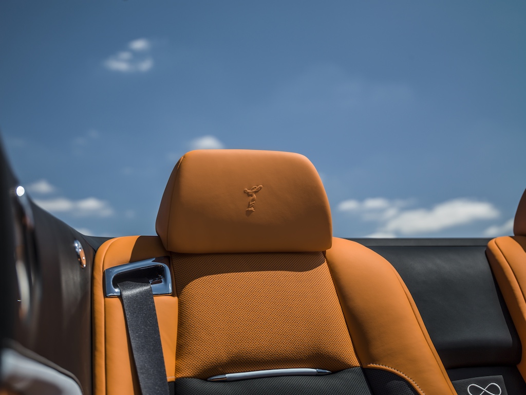 Turning to the brand’s more colorful side, the Paradiso Collection of one Dawn, one Ghost and one Wraith uses the newly-developed Quail Blue exterior paint color, which was inspired by the Quail Motorsports Gathering and its beautiful views of the Californian water and sky. The interior color schemes of the car vary, with the Ghost in Black and Charles Blue leather, and the Wraith and Dawn with Mandarin. The interiors of the three cars vary in design. Ghost, which is more focused on the rear passenger’s comfort, reflects this visually with a more intimate and cool Black and Charles Blue leather color-way off set by Charles Blue and Mandarin stitching and a Black and Charles Blue two-tone steering wheel. Wraith and Dawn add more Mandarin into the interior color palate, increasing the visual heat and driver’s intent of the cockpit.