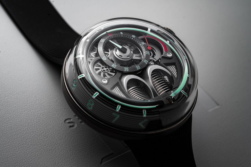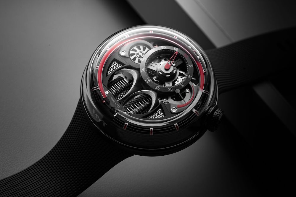 HYT is offering the H1.0 in five different versions. The version that combines a black PVD case with black fluid is the most toned down, with only a few red accents, while the versions with green, red, and blue fluids put more of an emphasis on the technology that makes these watches so different. Despite being quite avant-garde in their approach has HYT also succeeded in giving them a timeless appeal, as well as making them perfectly suitable for daily wear.