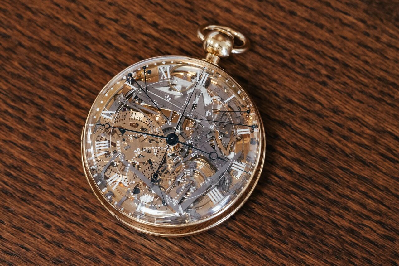 Breguet No.160, or better known under its nick-name Marie-Antoinette, was the pinnacle of watchmaking of its time. It can be seen as one of the first ‘Grande Complications’ as it incorporated a perpetual calendar, minute repeater, equation of time, as well as a split-second chronograph and a power reserve indicator. It was also equipped with several of Breguet’s own inventions, among them a metallic thermometer and a platinum oscillating weight, as Breguet pioneered this way of making pocket watches wind themselves automatically.
