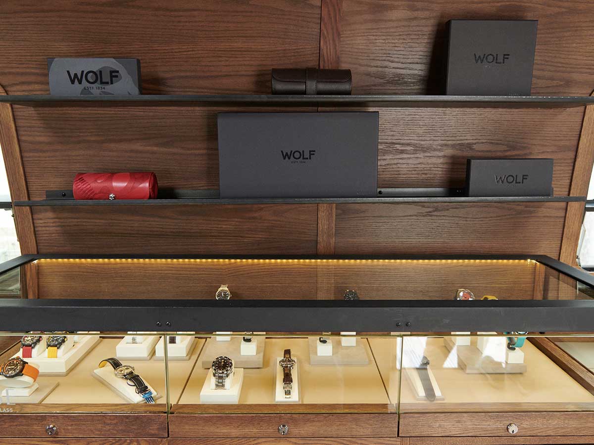 Produced in partnership with Creative Director Jay Gullion, the completely customized Airstream will serve as a multi-branded retail location throughout the summer. Mirroring the paradigm-shifting approach Watches of Switzerland took with their SoHo flagship, the Airstream was created in collaboration with best-in-class American craftsmen—Gullion tapped Midland Architecture to develop the design and layout of the Airstream’s interior, while Elmwood Customs handled the demolition and renovation of the Airstream, crafting custom wood floors, cabinets, and bespoke fixtures.