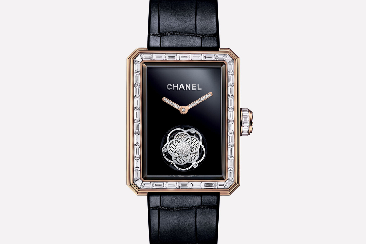 Whether quilted leather or tweed fabric, large pearls or gold chains, interlocking Cs or a stark black and white palette, the house of Chanel has long relied on a core set of signature design details, some which date back to the days of Coco herself. Chanel takes the same approach to designing its watches, turning to trusted silhouettes, textures, and motifs that have previously served the Maison well. The Chanel Premiere Openwork Flying Tourbillon watch for example, not only has a case shape inspired by the stopper of the famed Chanel N°5 perfume bottle but also a flying tourbillon (a movement exclusively designed by none other than Renaud et Papi) fashioned after Coco’s favorite flower, the camellia. Naturally, the watches are available in Coco’s preferred shades too: black, white, and beige gold.
